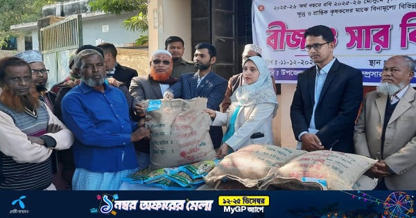 গাইবান্ধার সুন্দরগঞ্জ উপজেলায় রবি মৌসুমে কৃষি প্রণোদনার কর্মসূচির আওতায় ক্ষুদ্র ও প্রান্তিক কৃষকদের মাঝে বিনামূল্যে বীজ ও সার বিতরণ করা হয়েছে। এসব বীজ ও সার বিতরণ করেন উপজেলা নিবার্হী অফিসার ঈফফাত জাহান তুলি।
