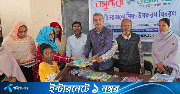 নওগাঁর ধামইরহাট উপজেলায় ক্ষুদ্র নৃ-গোষ্ঠির শিক্ষার্থীদের শিক্ষার অগ্রগতি ও উৎসাহ বৃদ্ধির লক্ষ্যে শিক্ষা উপকরণ বিতরণ করেছে বসুন্ধরা শুভসংঘ, ধামইরহাট উপজেলা শাখা।