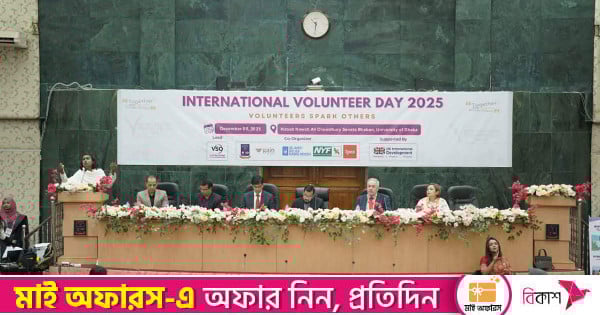 ঢাকা বিশ্ববিদ্যালয়ের (ঢাবি) নবাব নওয়াব আলী চৌধুরী সিনেট ভবনে আন্তর্জাতিক স্বেচ্ছাসেবক দিবস ২০২৫ উদযাপন করেছে। যা সামাজিক উন্নয়ন ও জলবায়ু সহনশীলতা অগ্রগতিতে স্বেচ্ছাসেবক ও যুব নেতৃত্বের ভূমিকা তুলে ধরে। অনুষ্ঠানটি যৌথভাবে ভিএসও বাংলাদেশ, ইনস্টিটিউট অব ডিজাস্টার ম্যানেজমেন্ট অ্যান্ড ভালনারেবিলিটি স্টাডিজ (আইডিএমভিএস) এবং ন্যাশনাল ইয়ুথ ফোরাম (এনওয়াইএফ) আয়োজন করে, সঙ্গে উন্নয়ন সহযোগী হিসেবে অংশ নেয় গেইন, আইপাস বাংলাদেশ ও ইসলামিক রিলিফ।