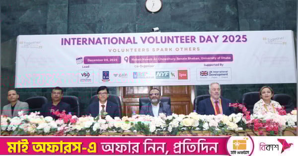 ‘এভ্রি কন্ট্রিবিউশন ম্যাটার্স’ প্রতিপাদ্যে ঢাকা বিশ্ববিদ্যালয় ক্যাম্পাসে আন্তর্জাতিক স্বেচ্ছাসেবক দিবস পালিত হয়েছে। ঢাকা বিশ্ববিদ্যালয়ের নবাব নওয়াব আলী চৌধুরী সিনেট ভবনে উপাচার্য অধ্যাপক ড. নিয়াজ আহমদ খান সোমবার সম্মেলনের উদ্বোধন করেন। অনুষ্ঠানের আয়োজন করে ঢাকা বিশ্ববিদ্যালয় ইনস্টিটিউট অব ডিজাস্টার ম্যানেজমেন্ট অ্যান্ড ভালনারেবিলিটি স্টাডিজ এবং স্বেচ্ছাসেবী সংস্থা ভলান্টারি সার্ভিস ওভারসিজ বাংলাদেশ (ভিএসও)।