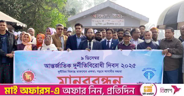 মানববন্ধন শেষে উপজেলা পরিষদ মিলনায়তনে এক আলোচনা সভা অনুষ্ঠিত হয়। সভায় প্রধান অতিথি হিসেবে বক্তব্য দেন উপজেলা নির্বাহী অফিসার আরাফাত আমান আজিজ। তিনি বলেন, ‘দুর্নীতি শুধু রাষ্ট্রীয় উন্নয়নকে বাধাগ্রস্ত করে না, এটি সামাজিক ন্যায়বিচারকে ক্ষতিগ্রস্ত করে এবং সাধারণ মানুষের অধিকার হরণ করে। দুর্নীতির বিরুদ্ধে প্রতিরোধ গড়ে তুলতে হলে পরিবার, শিক্ষাপ্রতিষ্ঠান ও সমাজের প্রতিটি স্তর থেকে সচেতনতা সৃষ্টি করতে হবে। সরকারি দপ্তরগুলোতেও স্বচ্ছতা ও জবাবদিহিতা নিশ্চিত করতে সংশ্লিষ্ট সবাইকে আরও আন্তরিকভাবে কাজ করতে হবে।’