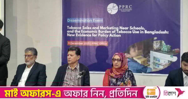 মঙ্গলবার ধানমন্ডিতে পিপিআরসি কার্যালয়ে এক অনুষ্ঠানে ‘টোব্যাকো কস্ট অ্যান্ড ইমপ্যাক্ট’ শীর্ষক এই গবেষণার ফলাফল প্রকাশ করা হয়। এতে বক্তব্য দেন পিপিআরসি নির্বাহী চেয়ারম্যান ড. হোসেন জিল্লুর রহমান।