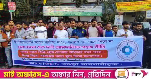 মঙ্গলবার (৯ ডিসেম্বর) বিকেল সাড়ে ৪টায় বগুড়া শহরের সাতমাথা এলাকায় এই মিছিল ও বিক্ষোভ অনুষ্ঠিত হয়। এতে বগুড়া শহরের শতাধিক মোবাইল ব্যবসায়ী অংশ নেন। মিছিলটি শহরের গুরুত্বপূর্ণ সড়ক প্রদক্ষিণ শেষে সাতমাথায় এসে সংক্ষিপ্ত সমাবেশে পরিণত হয়।