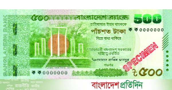 নতুন নকশার ৫০০ টাকার নোট বাজারে ছেড়েছে বাংলাদেশ ব্যাংক। তবে কেন্দ্রীয় ব্যাংক সরাসরি গ্রাহকের হাতে নতুন নোট দিচ্ছে না; বাণিজ্যিক ব্যাংকগুলো বাংলাদেশ ব্যাংক থেকে সংগ্রহ করার পর গ্রাহকদের হাতে পৌঁছাচ্ছে।