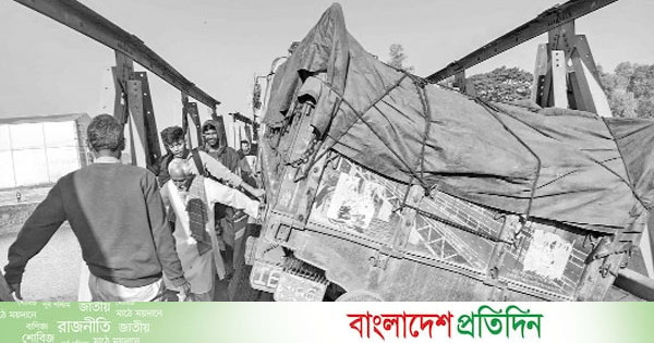 পাথর বোঝাই ট্রাকের ভারে গতকাল হবিগঞ্জ-বানিয়াচং আঞ্চলিক সড়কের রত্নায় বেইলি ব্রিজের পাটাতন ধসে পড়েছে। এরপর ওই ব্রিজ দিয়ে বন্ধ হয়ে গেছে সব ধরনের যান চলাচল। এর দুই পাশে আটকা পড়েছে শত শত যানবাহন। এতে চরম ভোগান্তিতে পড়েছেন ওই সড়ক দিয়ে চলাচল করা বানিয়াচং ও আজমিরীগঞ্জ উপজেলার হাজারো সাধারণ মানুষ। স্থানীয়রা জানায়, গতকাল সকাল সাড়ে ৮টার দিকে বানিয়াচংগামী একটি পাথর বোঝাই ট্রাক রত্নায় বেইলি ব্রিজের ওপর ওঠামাত্রই এর ভারে দুটি পাটাতন ভেঙে যায়। সেখানে আটকা পড়ে পাথর বোঝাই ট্রাকটি। তবে এতে কোনো হতাহতের খবর পাওয়া যায়নি। কাঠামো ব্যাপক ক্ষতিগ্রস্ত হওয়ায় ওই ব্রিজ দিয়ে যানবাহন চলাচল বন্ধ হয়ে যায়। মুহূর্তের মধ্যে যাত্রীবাহী বাস, সিএনজি, টমটম, প্রাইভেটকারসহ অসংখ্য যানবাহনের দীর্ঘ লাইন তৈরি হয়। বিপাকে পড়েন শিক্ষার্থী, রোগীসহ সাধারণ মানুষ এবং নিত্যপ্রয়োজনীয় পণ্যের ব্যবসায়ীরা। স্থানীয়দের অভিযোগ- দীর্ঘদিন যাবত ব্রিজটি জরাজীর্ণ হয়ে গেলেও কার্যকর কোনো পদক্ষেপ নেয়নি সংশ্লিষ্ট কর্তৃপক্ষ। দুর্ঘটনা ঘটলে সাময়িকভাবে মেরামত করে দেওয়া হয়।
