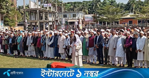 আজ মঙ্গলবার বেলা ১১ টায় ভোলা সরকারি স্কুল মাঠে মরহুমের জানাজা নামাজ শেষে মহাজনপট্টি বড় মসজিদ সংলগ্ন কবরস্থানে তাকে দাফন করা হয়।