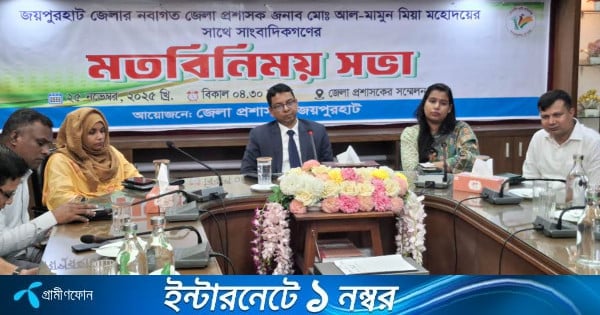 জয়পুরহাটের নতুন জেলা প্রশাসক ও জেলা ম্যাজিস্ট্রেট মো. আল-মামুন মিয়ার সঙ্গে জেলার কর্মরত সাংবাদিকদের মতবিনিময় সভা অনুষ্ঠিত হয়েছে।