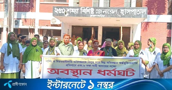 স্বতন্ত্র নার্সিং ও মিডওয়াইফারি অধিদপ্তরকে ভিন্ন অধিদপ্তরে একীভূত করার চেষ্টা বন্ধ এবং জাতীয় নার্সিং কমিশন গঠনসহ আট দফা দাবিতে বুধবার (২৬ নভেম্বর) ব্রাহ্মণবাড়িয়ায় ধর্মঘট পালন করেছে বাংলাদেশ নার্সেস অ্যাসোসিয়েশন (বিএনএ) ব্রাহ্মণবাড়িয়া জেলা শাখা।