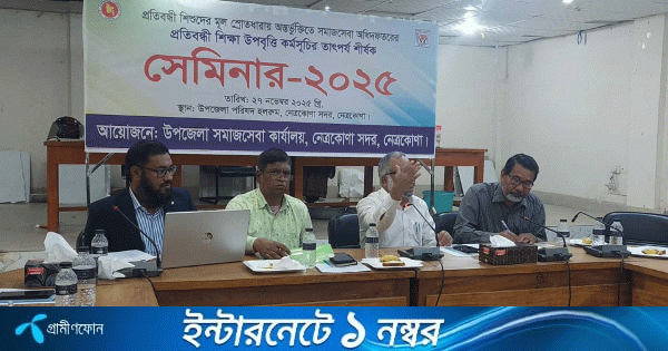 নেত্রকোনায় প্রতিবন্ধী শিশুদের মূলস্রোতধারায় অন্তভূক্তিতে সমাজসেবা অধিদপ্তরের শিক্ষা উপবৃত্তি কর্মসূচির তাৎপর্য শীর্ষক সেমিনার অনুষ্ঠিত হয়েছে।