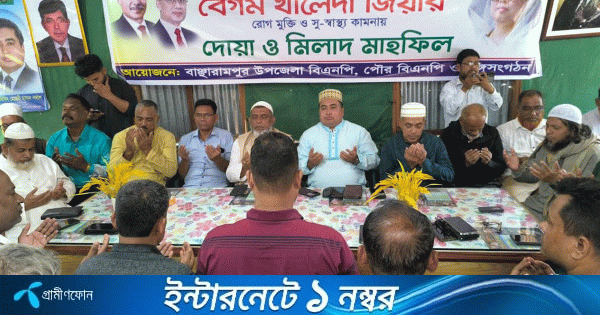 ব্রাহ্মণবাড়িয়ার বাঞ্ছারামপুরে সাবেক তিনবারের প্রধানমন্ত্রী ও বিএনপির চেয়ারপারসন বেগম খালেদা জিয়ার রোগমুক্তি ও দীর্ঘ সুস্থতা কামনায় বিশেষ দোয়া ও মিলাদ মাহফিল অনুষ্ঠিত হয়েছে।
