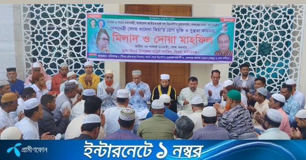 বিএনপি চেয়ারপারসন বেগম খালেদা জিয়ার রোগ মুক্তি ও সুস্থতা কামনায় মানিকগঞ্জের ঘিওরে বিশেষ মোনাজাত ও দোয়া মাহফিল অনুষ্ঠিত হয়েছে।