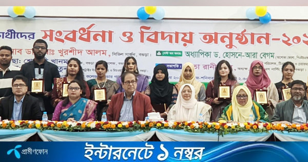 বগুড়ায় টিএমএসএস নার্সিং কলেজে ২১-২০২২ শিক্ষাবর্ষের ডিপ্লোমা ইন নার্সিং সায়েন্স অ্যান্ড মিডওয়াইফারি, ২০২০-২০২১ শিক্ষাবর্ষের ডিপ্লোমা ইন মিডওয়াইফারি এবং বিএসসি ইন নার্সিং (বেসিক) কোর্সের কৃতি শিক্ষার্থীদের সংবর্ধনা ও বিদায় অনুষ্ঠিত হয়েছে।