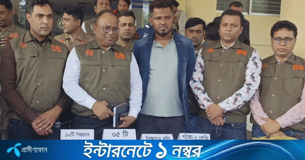 যশোরে বিশেষ অভিযানে পাঁচটি বিদেশি পিস্তল, ১০টি ম্যাগাজিন ও ৫০ রাউন্ড গুলিসহ একজনকে আটক করেছে জেলা পুলিশের গোয়েন্দা শাখা (ডিবি)।