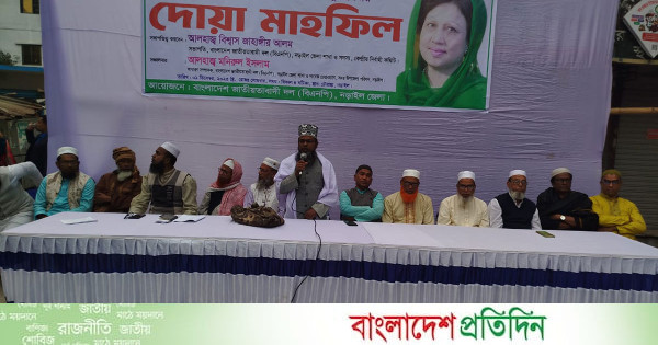 বিএনপি চেয়ারপার্সন বেগম খালেদা জিয়ার সুস্থতা কামনায় নড়াইলে দোয়া মাহফিল অনুষ্ঠিত হয়েছে। জেলা বিএনপির উদ্যোগে এ মাহফিল অনুষ্ঠিত হয়। সোমবার বাদ আছর শহরের চৌরাস্তায় জেলা বিএনপির কার্যালয়ের সামনে এ দোয়া মাহফিলের আয়োজন করা হয়।