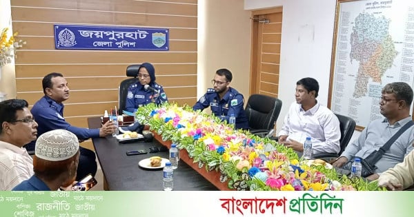 এসময় উপস্থিত ছিলেন অতিরিক্ত পুলিশ সুপার আরিফ হোসেন, সহকারী পুলিশ সুপার তুহিন রেজা, জেলা গোয়েন্দা শাখার (ডিবি) ওসি আসাদুজ্জামান, জেলা ট্রাফিক পুলিশের ইন্সপেক্টর জামিরুল ইসলাম, জয়পুরহাট প্রেসক্লাবের সিনিয়র সহ-সভাপতি মাশরেকুল আলম, রাশেদুজ্জামান রাশেদ, যুগ্ম সাধারণ সম্পাদক শাহিদুল ইসলাম সবুজ প্রমুখ।
