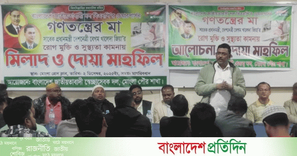 বাংলাদেশ জাতীয়তাবাদী দল বিএনপির চেয়ারপারসন বেগম খালেদা জিয়ার রোগমুক্তি ও সুস্থতা কামনায় মোংলায় দোয়া অনুষ্ঠিত হয়েছে। মঙ্গলবার সন্ধ্যায় প্রেসক্লাব মিলনায়তনে এ আয়োজন করে পৌর স্বেচ্ছাসেবক দল ও পৌর প্রজন্ম দল।
