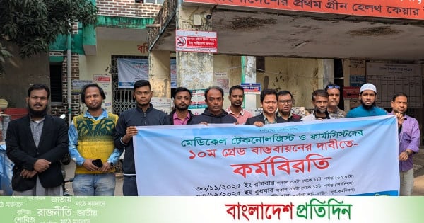 কর্মবিরতিতে উপজেলা স্বাস্থ্য কমপ্লেক্সের মেডিকেল টেকনোলজিস্ট (ল্যাব) মো. তানভীর ইসলাম বলেন, ১০ম গ্রেড বাস্তবায়নের দাবিতে আমরা বুধবার অর্ধদিবস কর্মবিরতি পালন করছি। দাবি বাস্তবায়ন না হলে বৃহস্পতিবার থেকে লাগাতার কমপ্লিট শাট ডাউন কর্মসূচি পালন করা হবে।