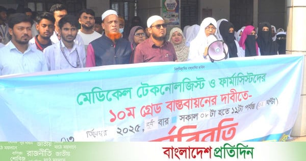এতে বক্তব্য রাখেন মেডিকেল টেকনোলজিস্ট ও ফার্মাসিস্ট ১০ম গ্রেড বাস্তবায়ন পরিষদের রবিউল ইসলাম, এটিএম আমিনুল হক, মো. আবুল কাশেম, মাহমুদুল হাসান, মো. নয়ন মিয়া, মোছা. ফাতেমা সুলতানা, নিগার সুলতানা, মোছা. ফৌজিয়া প্রমুখ।