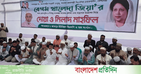 বাংলাদেশ জাতীয়তাবাদী দল বিএনপির চেয়ারপারসন বেগম খালেদা জিয়ার রোগমুক্তি কামনায় নারায়ণগঞ্জের সোনারগাঁয়ে মিলাদ ও দোয়া অনুষ্ঠিত হয়েছে।