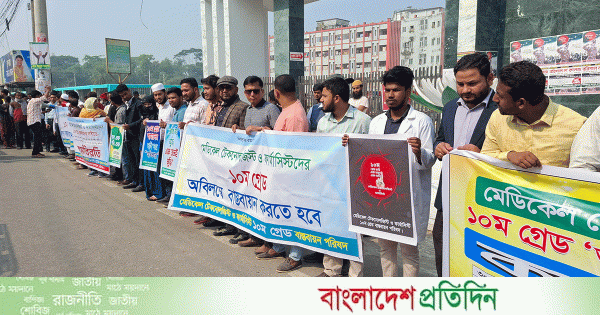 এসময় বক্তারা বলেন, সরকারি ও বেসরকারি স্বাস্থ্যসেবায় দীর্ঘদিন ধরে কর্মরত মেডিকেল টেকনোলজিস্ট ও ফার্মাসিস্টরা বৈষম্যের শিকার হচ্ছেন। ডিপ্লোমা প্রকৌশলী, নার্স ও কৃষিবিদরা ১০ম গ্রেডে উন্নীত হলেও তারা এখনও সেই সুবিধা থেকে বঞ্চিত হচ্ছেন। বছরের পর বছর ধরে মন্ত্রণালয়ে ১০ম গ্রেড বাস্তবায়নের বিষয়টি প্রক্রিয়াধীন থাকলেও, কার্যকর করা হচ্ছে না।