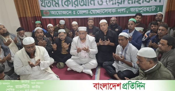 বিএনপির চেয়ারপার্সন ও সাবেক প্রধানমন্ত্রী বেগম খালেদা জিয়ার দ্রুত রোগমুক্তি ও সুস্থতা কামনায় জয়পুরহাট জেলা স্বেচ্ছাসেবক দলের উদ্যোগে দোয়া মাহফিল অনুষ্ঠিত হয়েছে।