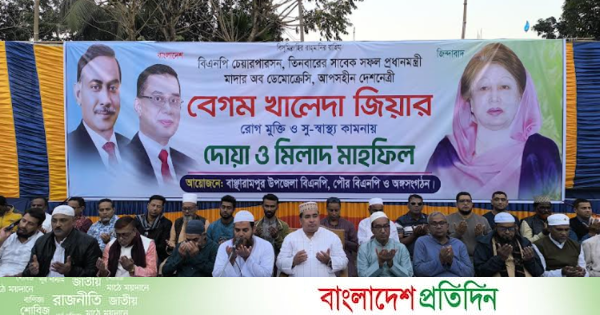 ব্রাহ্মণবাড়িয়ার বাঞ্ছারামপুরে বিএনপির চেয়ারপারসন ও তিনবারের সাবেক প্রধানমন্ত্রী বেগম খালেদা জিয়ার রোগমুক্তি ও সুস্বাস্থ্য কামনায় দোয়া ও মিলাদ মাহফিল অনুষ্ঠিত হয়েছে।