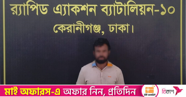 রবিবার দুপুরে র্যাব-১৩ এর সিনিয়র সহকারী পরিচালক বিপ্লব কুমার গোস্বামী এক বিজ্ঞপ্তিতে এ তথ্য জানিয়েছেন।