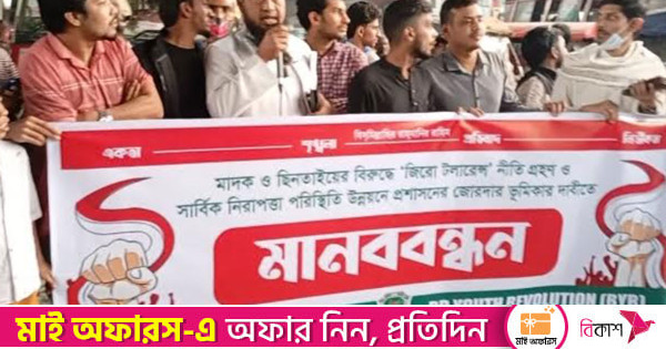গাজীপুরের ঢাকা–ময়মনসিংহ মহাসড়কের টঙ্গী স্টেশনরোড এলাকায় আজ রবিবার বিকেলে বাংলাদেশ ইয়ুথ রেভুলেশন কেন্দ্রীয় কমিটির উদ্যোগে মাদক ও ছিনতাইয়ের বিরুদ্ধে জিরো টলারেন্স এবং সার্বিক নিরাপত্তা পরিস্থিতি উন্নয়নের দাবিতে মানববন্ধন কর্মসূচি পালন করা হয়। কর্মসূচির কারণে টঙ্গী স্টেশনরোডসহ আশপাশের এলাকায় তীব্র যানজটের সৃষ্টি হয় এবং যাত্রীরা ভোগান্তিতে পড়েন।
