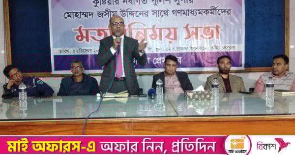 রবিবার (৭ ডিসেম্বর) সন্ধ্যা সাড়ে ৬টায় কুষ্টিয়া প্রেসক্লাবের এম এ রাজ্জাক মিলনায়তনে এক মতবিনিময় সভায় তিনি এসব কথা বলেন। তৌহিদ হাসানের সঞ্চালনায় সভার শুরুতে স্বাগত বক্তব্য রাখেন প্রেসক্লাবের সদস্য সচিব আবু মনি জুবায়ের রিপন।
