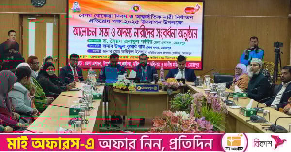 বর্ণাঢ্য র্যালি আলোচনা সভা ও অদম্য নারীদের সংবর্ধনার মধ্য দিয়ে মেহেরপুরে মেহেরপুরে আন্তর্জাতিক নারী নির্যাতন প্রতিরোধ পক্ষ ও বেগম রোকেয়া দিবস পালিত হয়েছে।