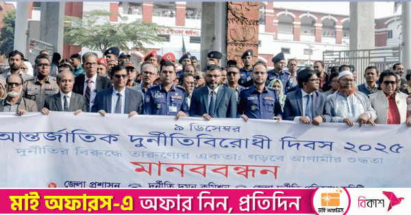 ‘দুর্নীতির বিরুদ্ধে তারুণ্যের একতা: গড়বে আগামীর শুদ্ধতা’ প্রতিপাদ্যে খুলনায় আন্তর্জাতিক দুর্নীতিবিরোধী দিবস পালন করা হয়েছে। মঙ্গলবার এ উপলক্ষ্যে জেলা প্রশাসকের সম্মেলন কক্ষে আলোচনা সভা আয়োজন করা হয়।