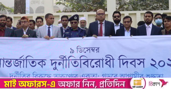 পরে দুর্নীতি প্রতিরোধে গোপালগঞ্জ-টুঙ্গীপাড়া সড়কের ওপর দাঁড়িয়ে সুশাসন চত্বরের সামনে বিভিন্ন সরকারি দপ্তরের কর্মকর্তা-কর্মচারীরা মানববন্ধন করে।