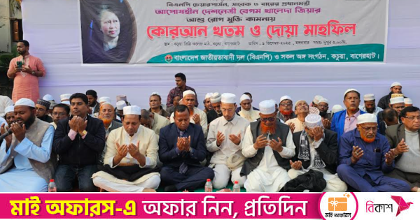 বাগেরহাটে বিএনপির চেয়ারপারসন ও সাবেক প্রধানমন্ত্রী বেগম খালেদা জিয়ার আশু রোগমুক্তি কামনায় কোরআন খতম ও দোয়া মাহফিলের আয়োজন করেছে কচুয়া উপজেলা বিএনপি।