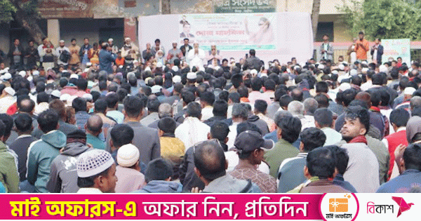 মঙ্গলবার বিকালে গোল-ই-আফরোজ সরকারি কলেজ মাঠে এই দোয়া মাহফিলের আয়োজন করেন নাটোর-৩ আসনে বিএনপির মনোনীত প্রার্থী অধ্যক্ষ আনোয়ারুল ইসলাম আনু। অনুষ্ঠানে তিনি প্রধান অতিথির বক্তব্য রাখেন।