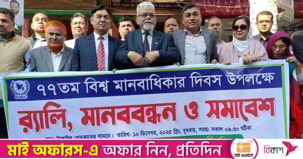 বুধবার সকালে টাঙ্গাইল প্রেসক্লাবের সামনে মানববন্ধন ও মানবাধিকার কর্মী সমাবেশ অনুষ্ঠিত হয়। পরে একটি বর্ণাঢ্য র্যালি শহর প্রদক্ষিণ করে।
