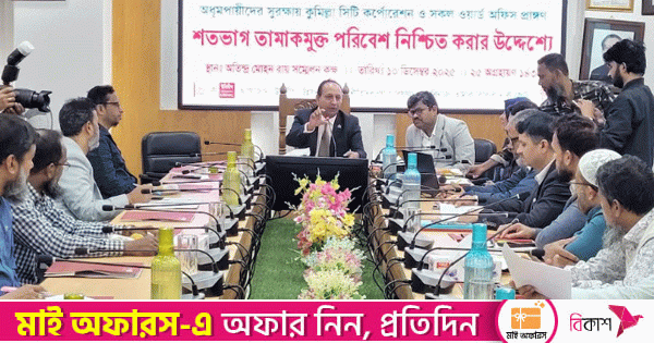 কুমিল্লা সিটি করপোরেশনের সব অফিস প্রাঙ্গণকে শতভাগ তামাকমুক্ত করতে দ্রুত উদ্যোগ নেওয়া হবে বলে জানিয়েছেন সিটি প্রশাসক মো. শাহ আলম। তিনি বলেন, জনস্বাস্থ্য সুরক্ষা নিশ্চিত করতে তামাকমুক্ত পরিবেশ গড়ে তোলার বিকল্প নেই। এ বিষয়ে আয়োজক সংস্থাগুলোর সহযোগিতা নিয়ে শিগগিরই বাস্তবায়ন কার্যক্রম শুরু করা হবে।