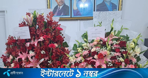 বৃহস্পতিবার সন্ধ্যা ৬ টায় গুলশান চেয়ারপার্সন অফিসে ঢাকাস্থ পাকিস্তান দূতাবাসের কর্মকর্তা ফুলের তোড়া পৌঁছে দিয়েছেন।