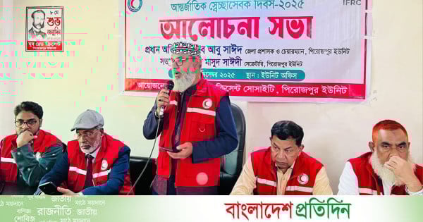 শুক্রবার বাংলাদেশ রেড ক্রিসেন্ট সোসাইটি, পিরোজপুর ইউনিটের উদ্যোগে আন্তর্জাতিক স্বেচ্ছাসেবক দিবস–২০২৫ উদযাপন উপলক্ষে আয়োজিত আলোচনা সভায় প্রধান অতিথির বক্তব্যে তিনি এসব কথা বলেন।