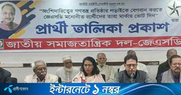 আসন্ন ত্রয়োদশ জাতীয় সংসদ নির্বাচনে ১৭০ আসনে প্রাথমিক প্রার্থী তালিকা প্রকাশ করেছে জাতীয় সমাজতান্ত্রিক দল (জেএসডি)। রবিবার (৩০ নভেম্বর) জাতীয় প্রেস ক্লাবের জহুর হোসেন চৌধুরী হলে এক সংবাদ সম্মেলনে এ তালিকা প্রকাশ করা হয়।