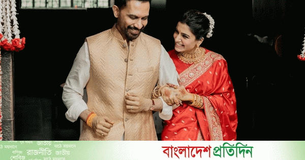 ক্যাপশনে শুধুই লেখা, ‘১.১২.২০২৫’। আর সেই সঙ্গেই একটি ছবি| যেখানে বরের হাত ধরে মন্দির থেকে হাসিমুখে বেরিয়ে আসছেন দক্ষিণ ভারতীয় তারকা সামান্থা রুথ প্রভু। পরনে লাল বেনারসি আর হাতে গাঢ় মেহেন্দি।