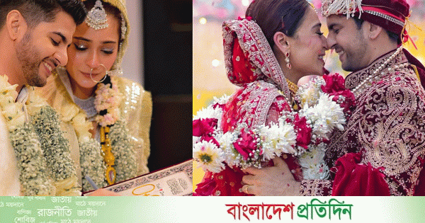 শুক্রবার (৫ ডিসেম্বর) কয়েকজন নিকট আত্মীয় এবং বন্ধুবান্ধবের উপস্থিতিতে মুম্বইয়ে চার হাত এক হল। হিন্দু রীতি মেনে গায়ে হলুদ থেকে সাতপাক ঘোরার পাশাপাশি মালাবদল, সিঁদুরদানও হয়। এদিন লাল লেহেঙ্গার সঙ্গে মানাসই স্বর্ণ এবং কুন্দনের গয়নায় সেজেছিলেন ‘বিদাই’ ধারাবাহিক খ্যাত সারা খান।