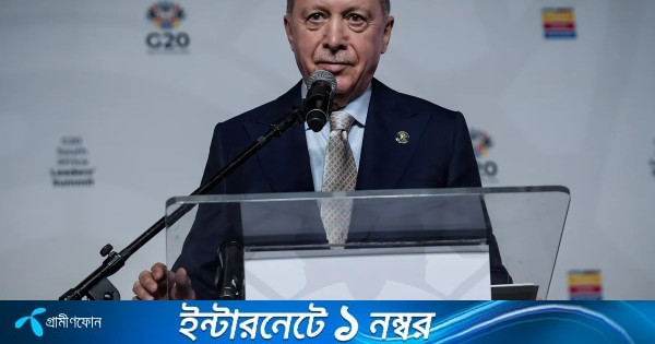 দক্ষিণ আফ্রিকার জোহানেসবার্গে অনুষ্ঠিত জি-২০ শীর্ষ সম্মেলনে অংশগ্রহণ শেষে দেশে ফেরার পথে সাংবাদিকদের সঙ্গে আলাপে প্রেসিডেন্ট এরদোয়ান জানান, গাজায় মানবিক সহায়তার নির্বিঘ্ন প্রবেশের পাশাপাশি পূর্ণাঙ্গ যুদ্ধবিরতি বাস্তবায়ন এখন অত্যন্ত জরুরি।