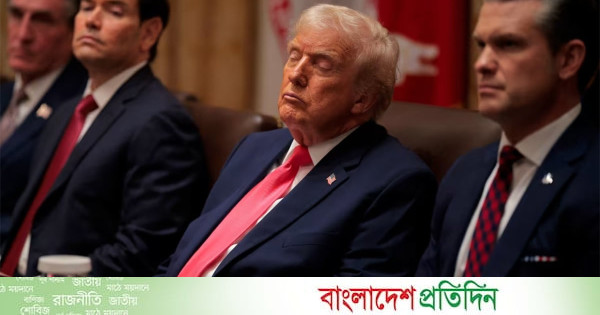 ক্যাবিনেট সদস্যরা একের পর এক দীর্ঘ বক্তৃতা দিচ্ছিলেন। আর চেয়ারে হেলান দিয়ে আধবোজা চোখে বসে আছেন ট্রাম্প, কখনও কখনও পুরোপুরি বন্ধ হয়ে যাচ্ছে চোখ।