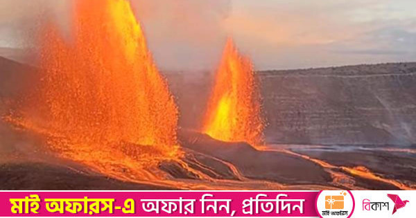 সংস্থাটি জানায়, শনিবার স্থানীয় সময় সকাল ৮টা ৪৫ মিনিটের দিকে দুটি জ্বালামুখ খুলে যায়। এর আগে আরেকটি ফাটল থেকে লাভা প্রবাহ বের হতে দেখা গেছে। ইউএসজিএস বলছে, একই সময়ে তিনটি সক্রিয় লাভা ফোয়ারা পর্যবেক্ষণ করা অত্যন্ত বিরল। কিছু লাভা প্রায় ৩৭০ মিটার উঁচু পর্যন্ত ছিটকে উঠেছিল।