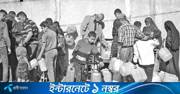 বিশুদ্ধ খাবার পানি সংগ্রহ করছেন ফিলিস্তিনিরা। গাজার নুসাইরাত শরণার্থী শিবির থেকে তোলা -এএফপি