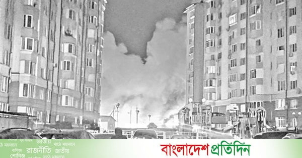 রাশিয়ার ড্রোন হামলায় ইউক্রেনের ভবনে আগুন