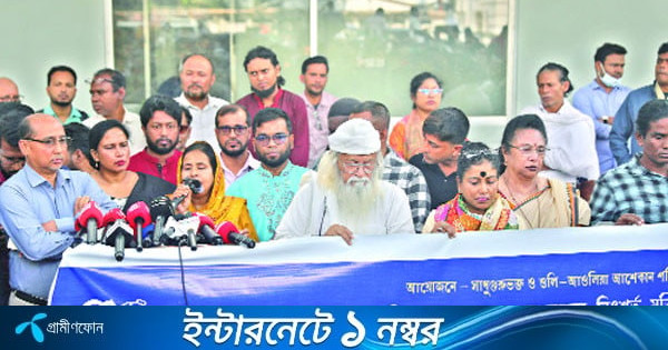 বাউলশিল্পী আবুল সরকারের নিঃশর্ত মুক্তি ও মানিকগঞ্জে তাঁর সমর্থকদের ওপর হামলার প্রতিবাদে গতকাল জাতীয় প্রেস ক্লাবের সামনে মানববন্ধন -বাংলাদেশ প্রতিদিন