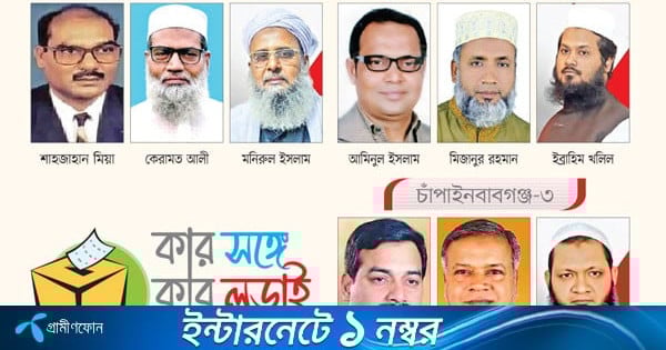 চাঁপাইনবাবগঞ্জ-২ (নাচোল-গোমস্তাপুর-ভোলাহাট) : এ আসনে বিএনপির প্রার্থী সাবেক সংসদ সদস্য আমিনুল ইসলামের সঙ্গে জামায়াতের ড. মিজানুর রহমানের লড়াইয়ের আভাস মিলছে। স্থানীয়রা মনে করছেন, এখানে বিএনপির প্রায় এক ডজন মনোনয়নপ্রত্যাশী ছিলেন। তাঁদের মধ্যে আমিনুল ইসলামকে প্রার্থী ঘোষণা করা হয়েছে। মনোনয়নবঞ্চিতরা এককাট্টা হয়ে প্রার্থী পরিবর্তন করার দাবি করে আসছেন।