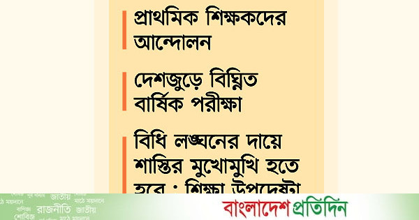 অন্যদিকে চার দফা দাবিতে সরকারি মাধ্যমিক শিক্ষকদের চলমান কর্মবিরতিতে বার্ষিক এবং এসএসসি নির্বাচনি পরীক্ষা অনিশ্চয়তায় পড়ায় গত রাতে এ কর্মবিরতি প্রত্যাহার করেছেন শিক্ষকরা। এর আগে সোমবার শিক্ষা উপদেষ্টা সি আর আবরার কর্মবিরতি পালনরত শিক্ষকদের সরকারি কর্মচারী বিধি লঙ্ঘনের দায়ে শাস্তির মুখোমুখি করার হুঁশিয়ারি দিয়েছিলেন।
