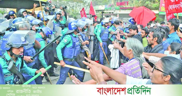 বিদেশি কোম্পানির সঙ্গে বন্দর নিয়ে করা রাষ্ট্রীয় চুক্তির প্রতিবাদে বাম জোটের প্রধান উপদেষ্টার বাসভবন যমুনা ঘেরাও কর্মসূচিতে পুলিশের লাঠিচার্জে আহত হয়েছেন ১২ নেতা-কর্মী। গতকাল দুপুরে কাকরাইল মোড়ে এ ঘটনা ঘটে। পুলিশের লাঠিচার্জে আহতদের উদ্ধার করে ঢাকা মেডিকেল (ঢামেক) কলেজ হাসপাতালে নেওয়া হয়। এরআগে লালদিয়া ও পায়রা বন্দরের ইজারা চুক্তি বাতিল এবং চট্টগ্রাম বন্দরের বিদেশি অপারেটর নিয়োগের সিদ্ধান্তের প্রতিবাদে বাম গণতান্ত্রিক জোট ঢাকার পুরানা পল্টনে মানববন্ধন ও সমাবেশ করে। এরপর পূর্বঘোষিত কর্মসূচির অংশ হিসেবে প্রধান উপদেষ্টার বাসভবন যমুনা ঘেরাও করতে বিক্ষোভ মিছিল নিয়ে যমুনা অভিমুখে রওনা দেয়। কিন্তু বাম জোটের মিছিল কাকরাইল মোড়ে পৌঁছলে আটকে দেয় পুলিশ। এ সময় সেখানেই বসে পড়েন বিক্ষোভকারীরা। ফলে সড়কের দুই পাশেই যান চলাচল বন্ধ হয়ে যায়। সড়ক থেকে তাদের উঠিয়ে দিতে গেলে পুলিশের সঙ্গে বিক্ষোভকারী বাম জোটের নেতা-কর্মীদের কয়েক দফা ধস্তাধস্তির ঘটনা ঘটে। একপর্যায়ে পুলিশ লাঠিচার্জ করে। এতে সিপিবির কেন্দ্রীয় কমিটির সদস্য কাজী রুহুল আমিন, ছাত্র ইউনিয়নের সাবেক সভাপতি জহুর লাল রায়সহ ১২ জন আহত হন। ঢামেক হাসপাতালের পুলিশ ক্যাম্পের ইনচার্জ পরিদর্শক মো. ফারুক জানান, আহত অবস্থায় ১২ জনকে হাসপাতালে জরুরি বিভাগে আনা হয়েছিল। প্রাথমিক চিকিৎসা শেষে তাদের ছেড়ে দিয়েছেন চিকিৎসক।